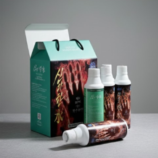 pH 12.7 이상의 초고알칼리성 제품입니다. 1000ml 물에 신의한수 50ml 희석하여 하루 총 2000ml 물을 섭취하세요.
